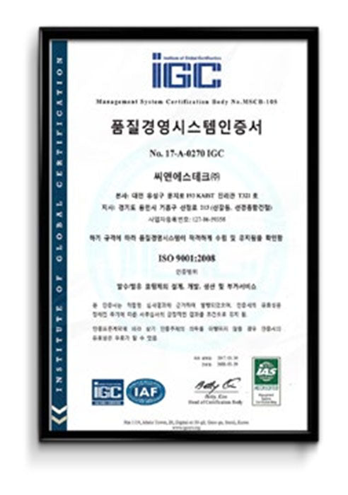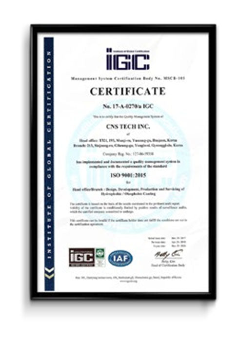 - Certificate: ISO9001