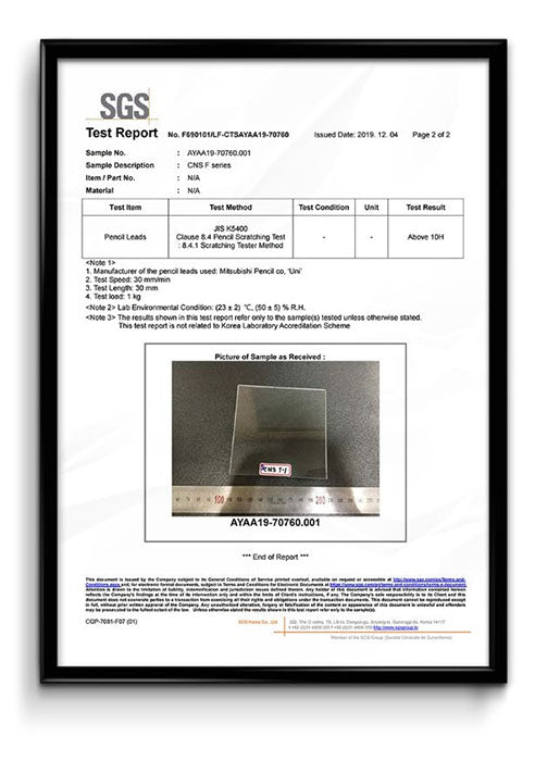 - Certificate: SGS 9H hardness test